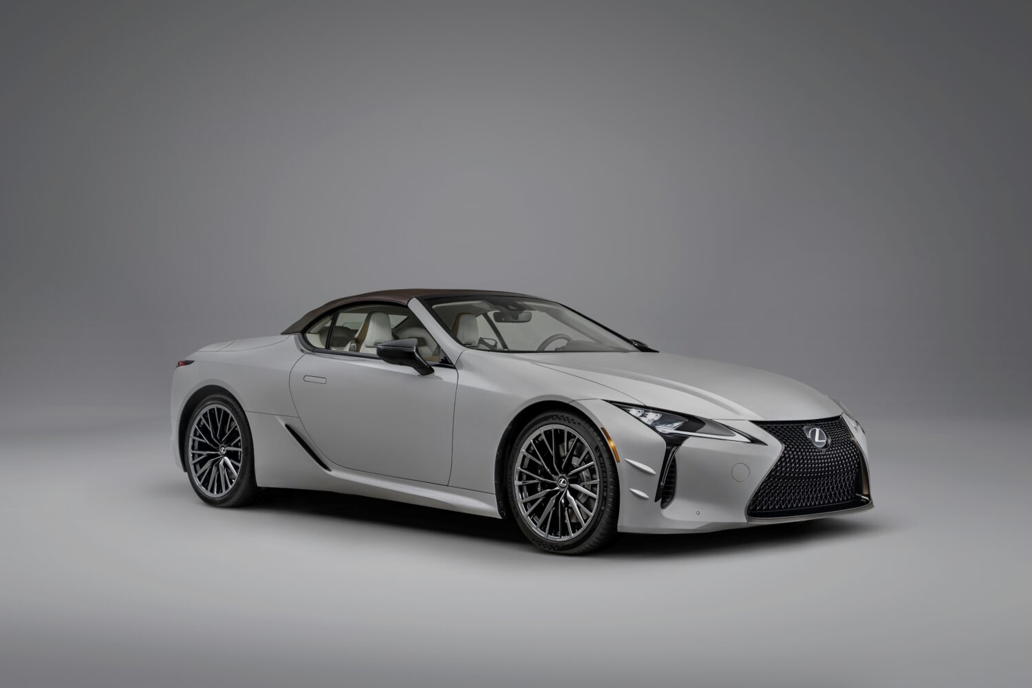 専用色「朧銀灰 (Oborogin Grey)」。日本の金属鍛造工芸「朧銀(おぼろぎん)」から着想を得たマット塗装です。 - コンバーチブル (LC 500 Convertible):