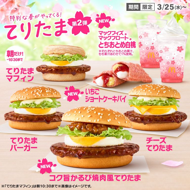 マクドナルドは、春の風物詩としてお馴染みの「てりたま」シリーズを、3月8日(水)より期間限定で全国のマクドナルド店舗で今年も販売!