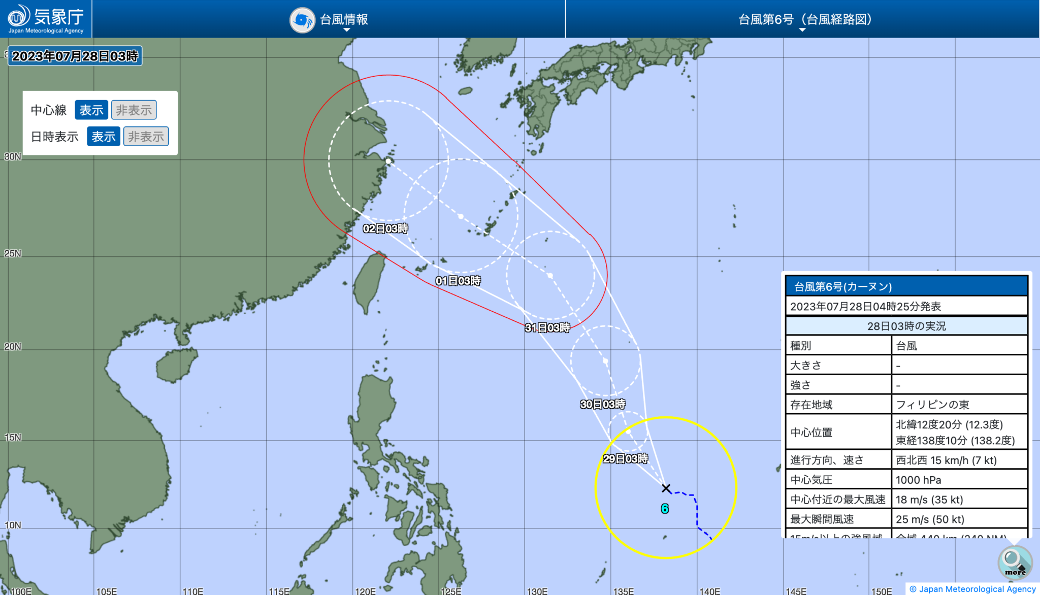 7/28(金) ちょうど1週間前に5号が発生したのをお知らせしました。