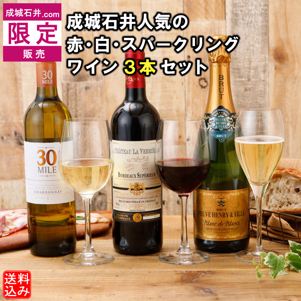辛口のシャンパーニュとボルドーの樽熟赤ワイン、辛口白ワインの3本セットがなんと送料・税込みで¥5,990!