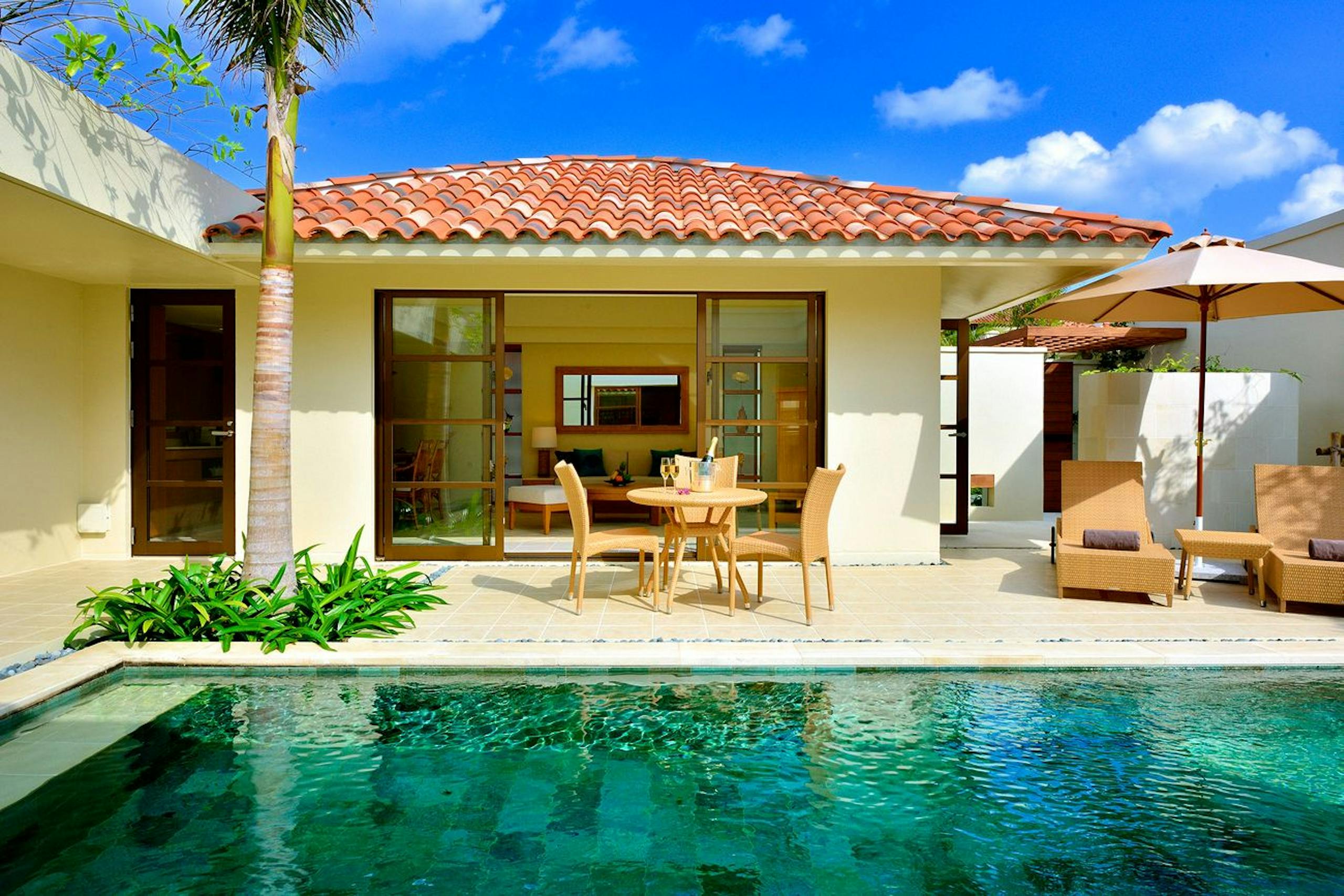 県民の憧れです。読谷村なので、那覇空港からもそんなに遠くなく、こんなにプライベート感満載のヴィラはここだけ。