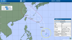 24日お昼頃にミンダナオ島の東で台風に発達した後、28日には沖縄本島の南へ接近する予報となっています。