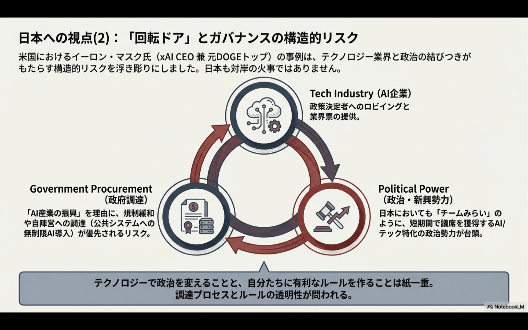彼らが掲げる「テクノロジーによる政治刷新」というスローガンは、実は「自分たちに都合の良いルールを、誰にも気づかれずに自動化する」ための、完璧なカモフラージュではないでしょうか。