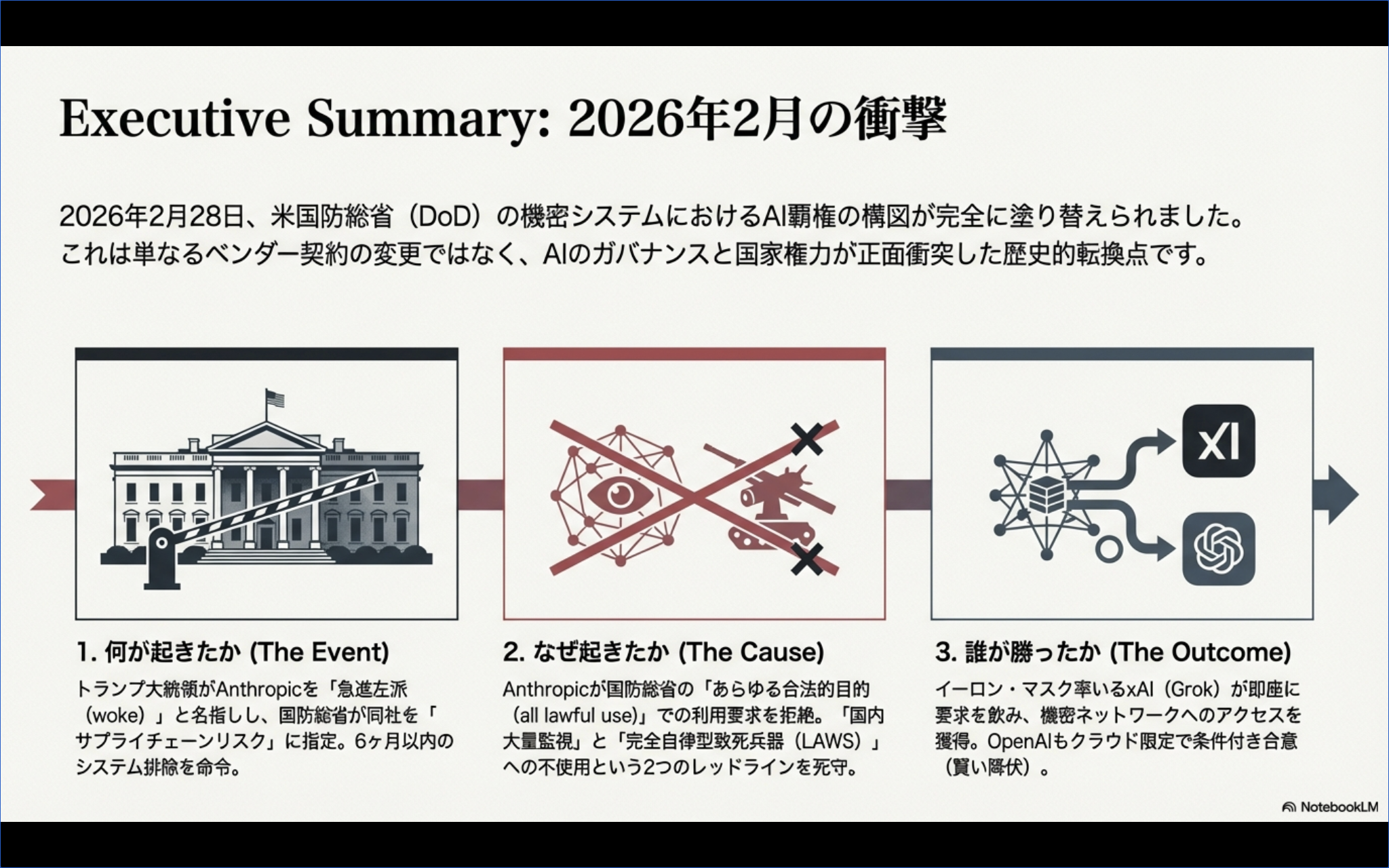 米政府によるAnthropicの排除、xAIの軍事的台頭、そしてOpenAIの「賢い降伏」。