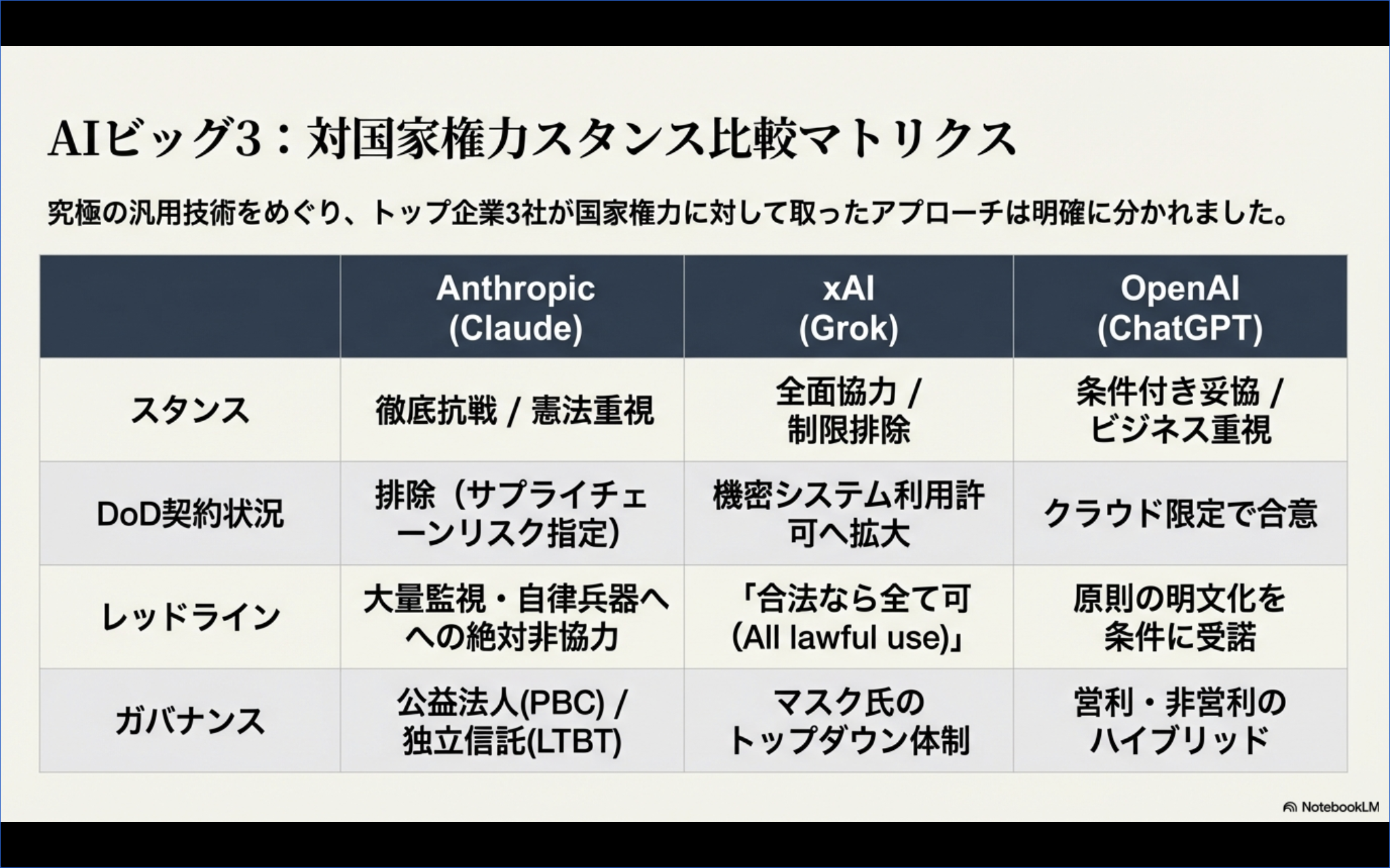 2. OpenAI vs xAI:軍事AI契約を勝ち取った「忠誠心」の比較分析