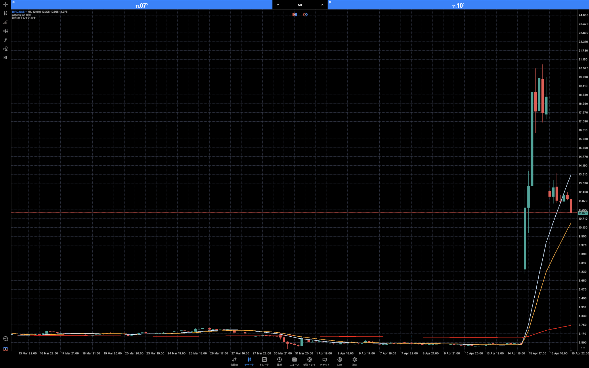 | 4/16(木) | $10.91(▲55%) | 利益確定売りが先行 |