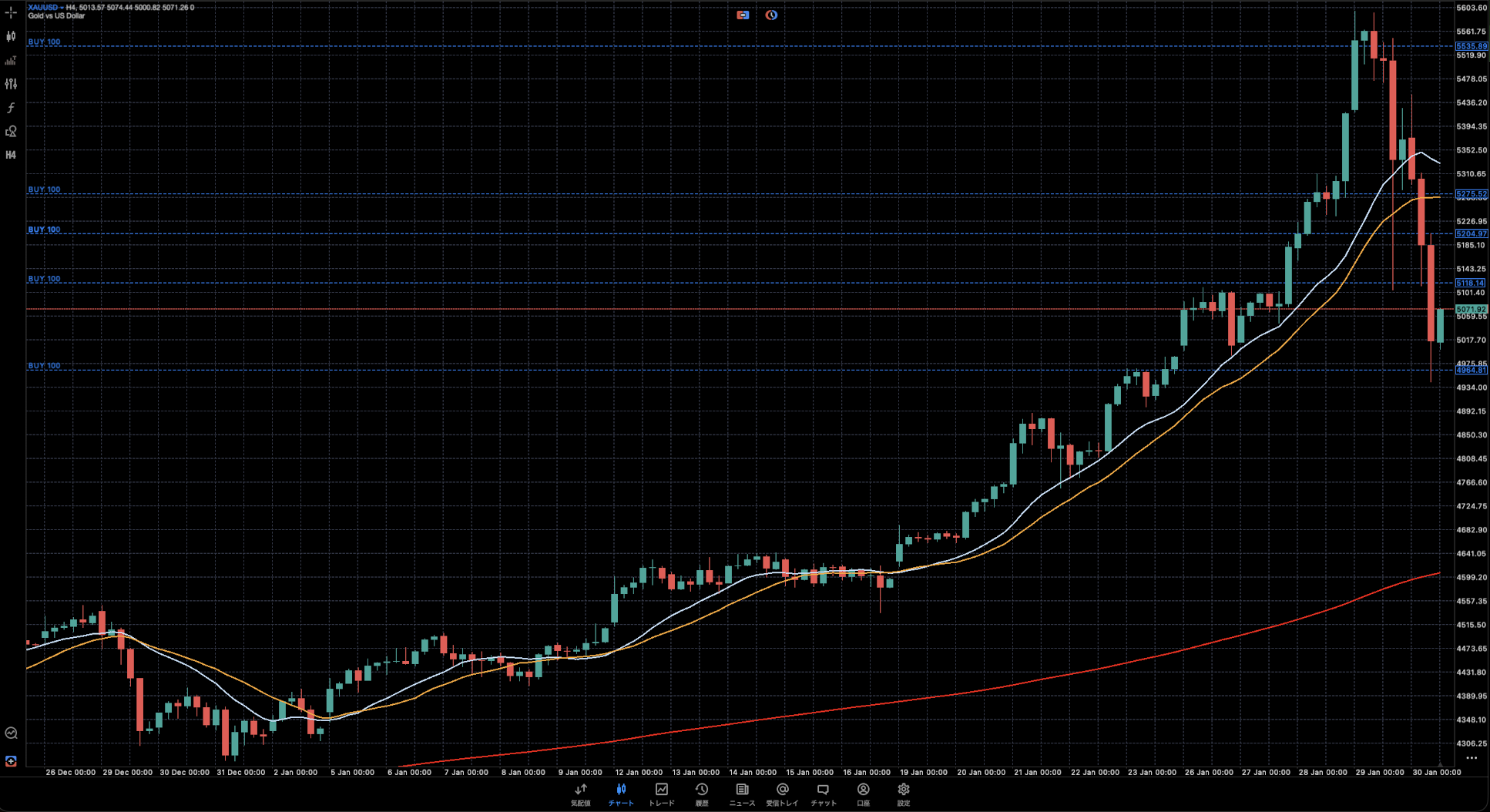 1月下旬、金は1オンス=5,000ドルという歴史的な大台を突破し、一時5,600ドル近くまで暴騰しましたが、その後一気に5,100ドル台まで急落しました。