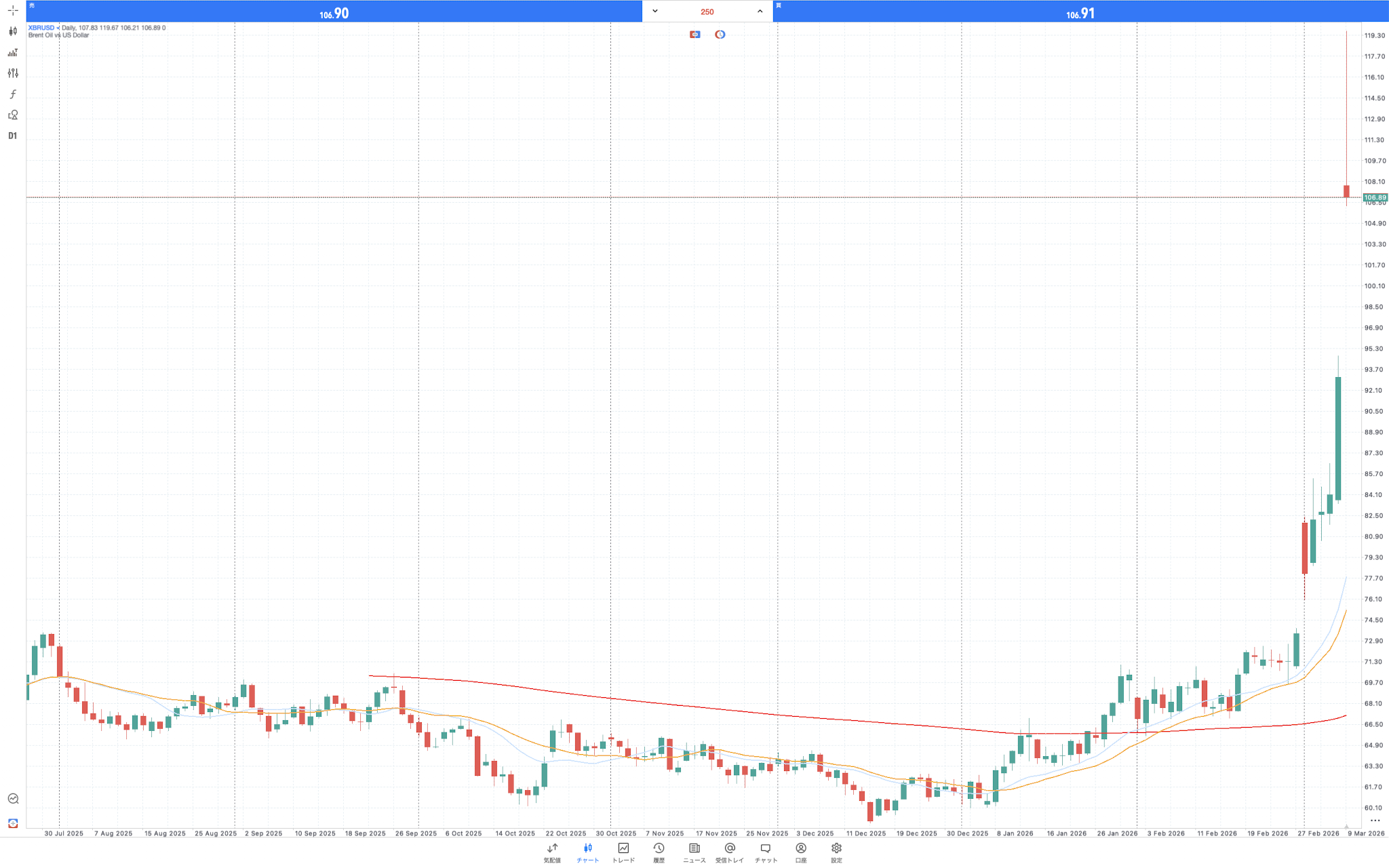 日経平均の日足チャート3/9