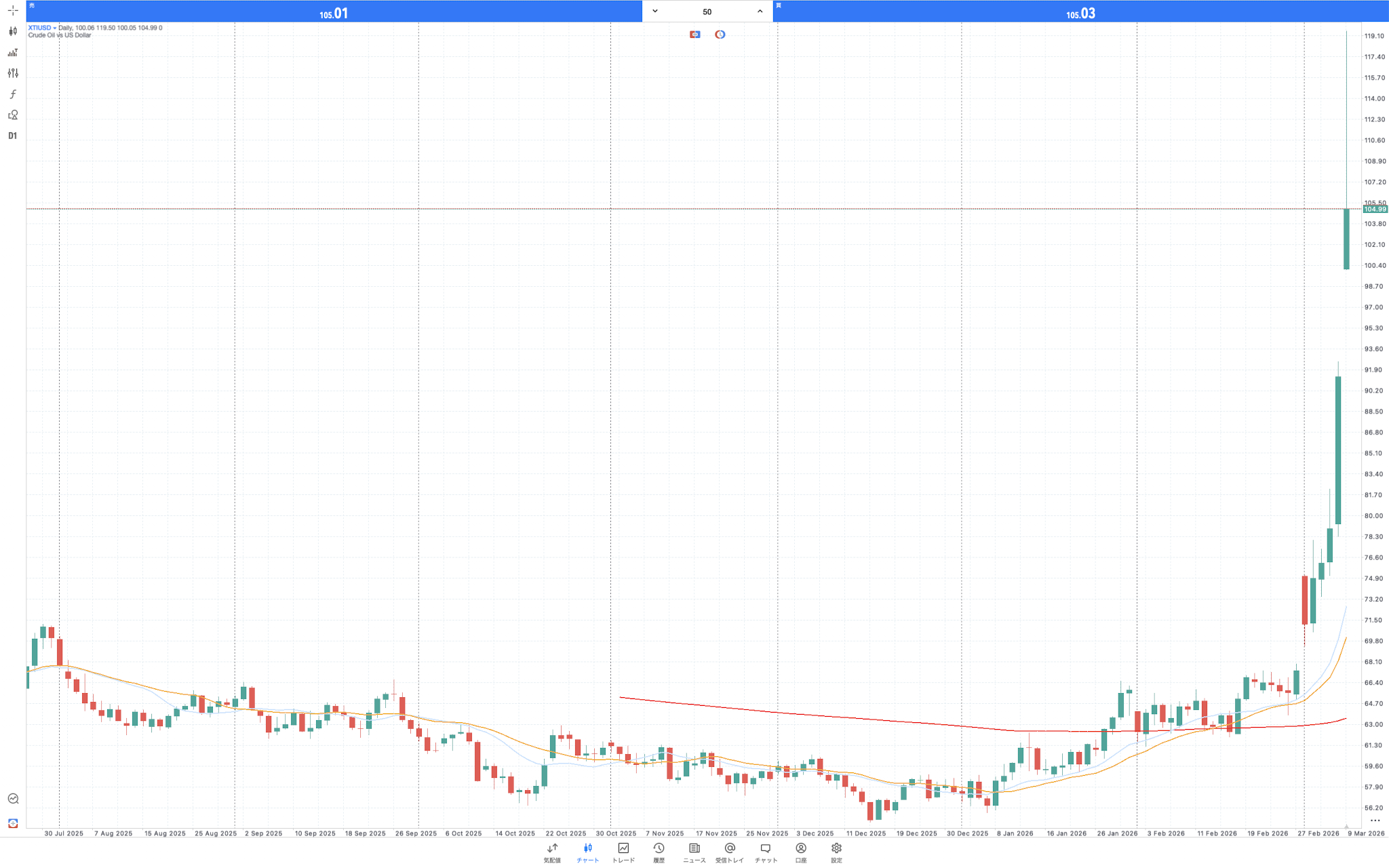 WTI原油先物111ドル/バレル急騰